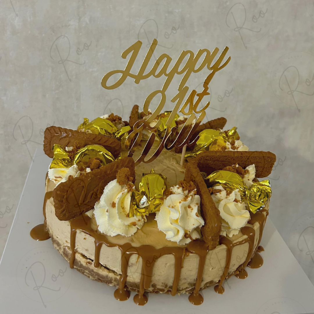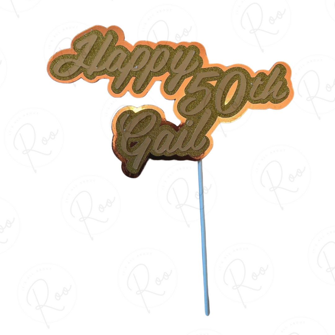Text for a standard topper will read "Happy Birthday" or "Happy Anniversary"