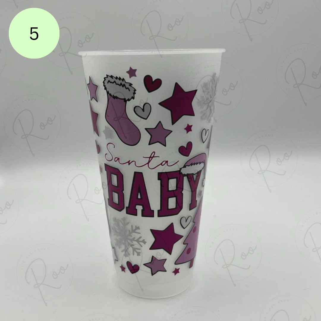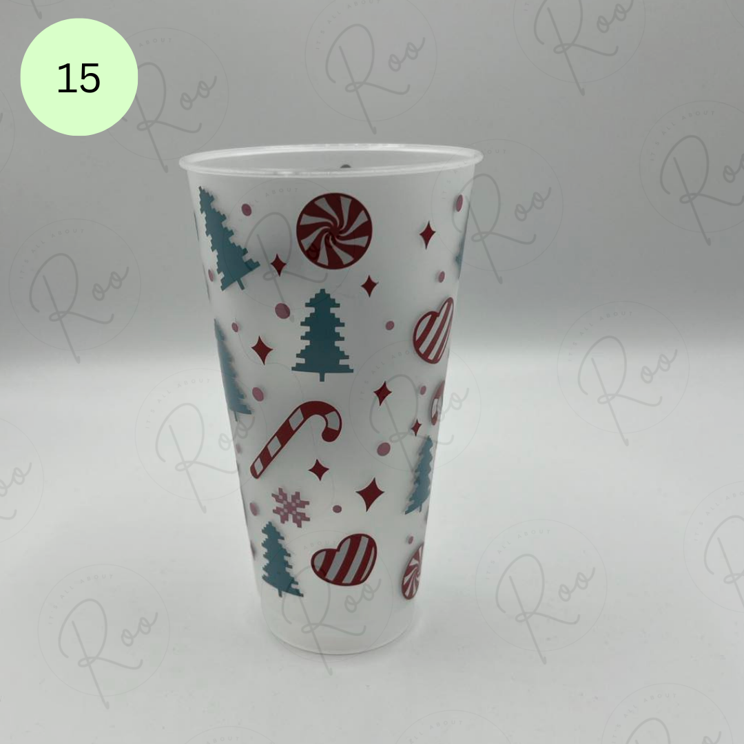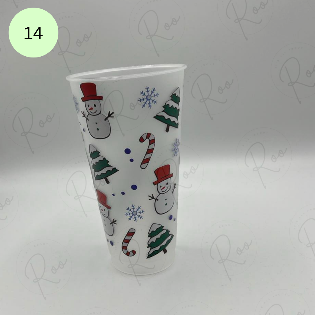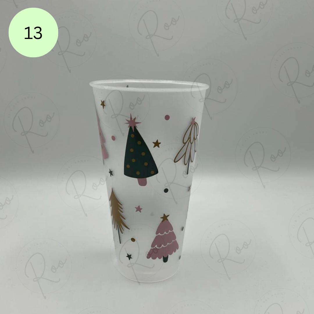 Our 24oz Christmas cold cups are a frosted cup with a Christmas design applied (multiple design choices available).