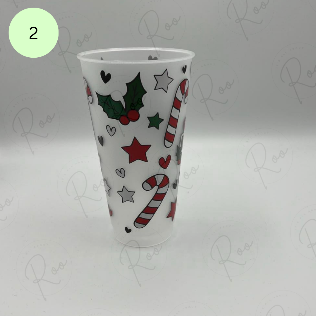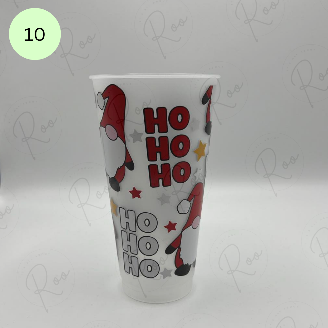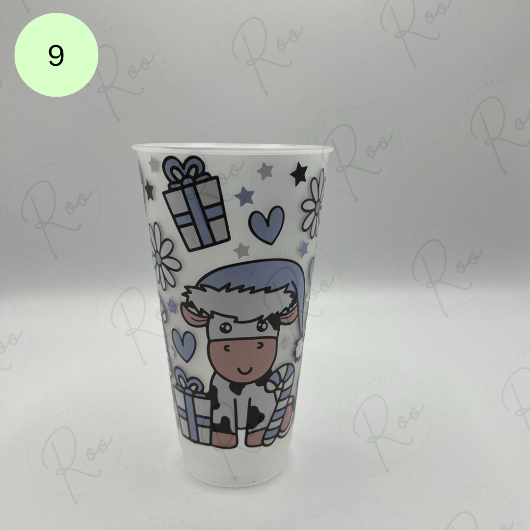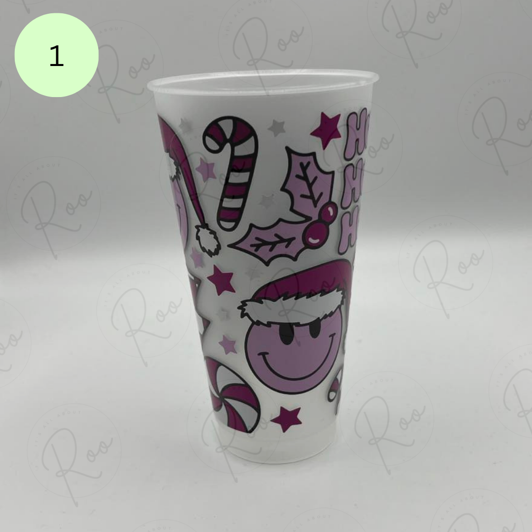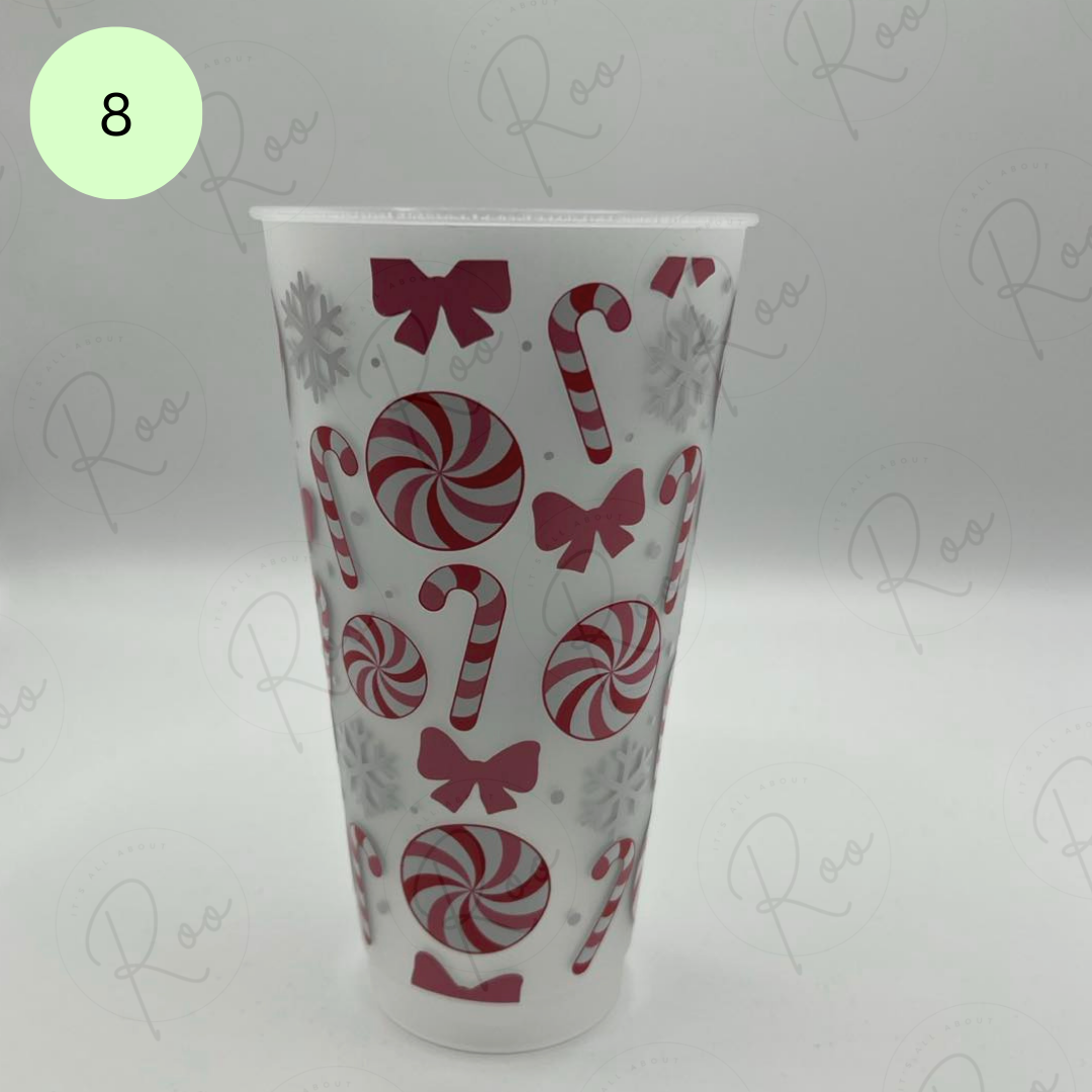 Our 24oz Christmas cold cups are a frosted cup with a Christmas design applied (multiple design choices available).