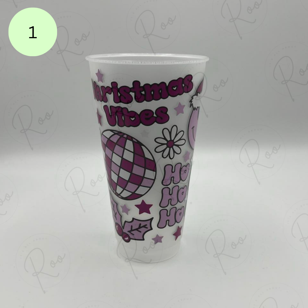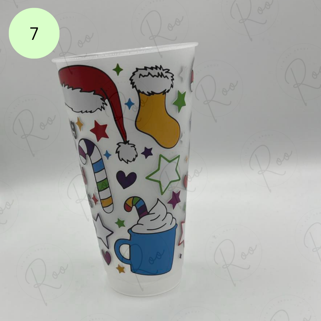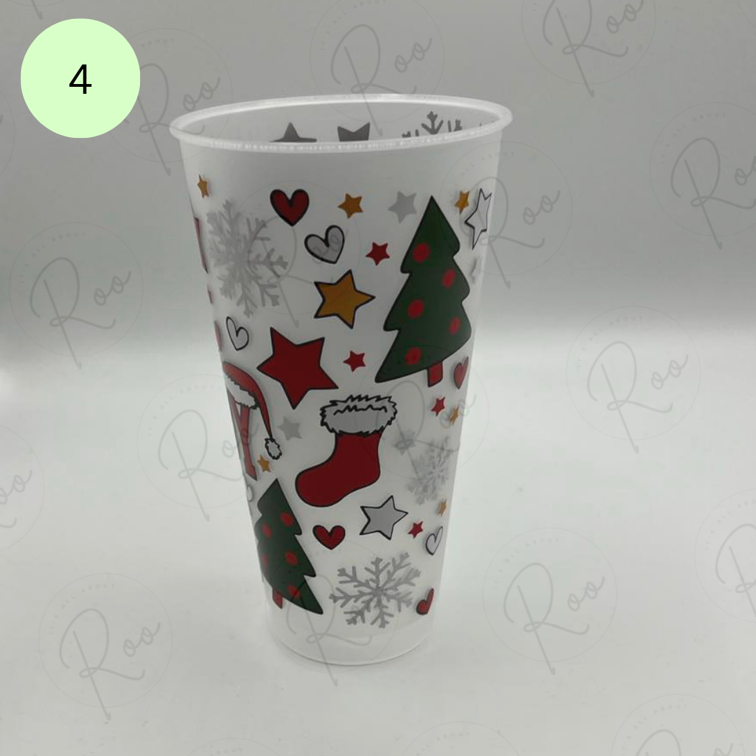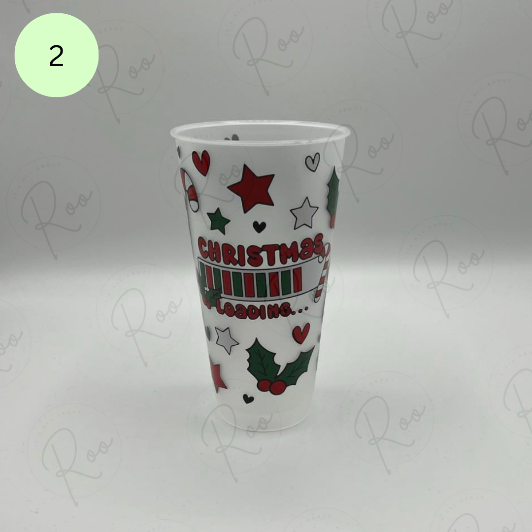 Our 24oz Christmas cold cups are a frosted cup with a Christmas design applied (multiple design choices available).