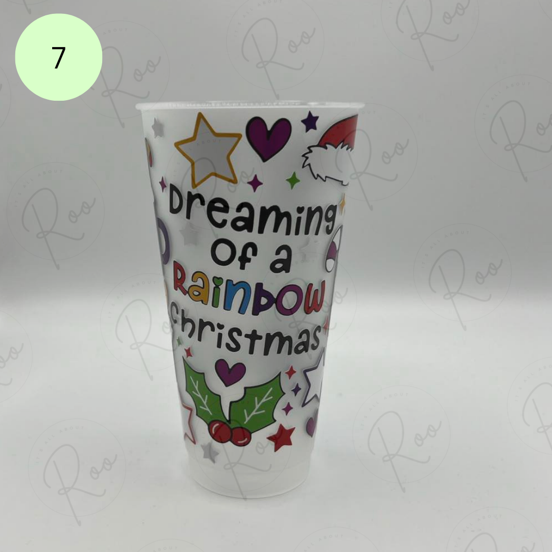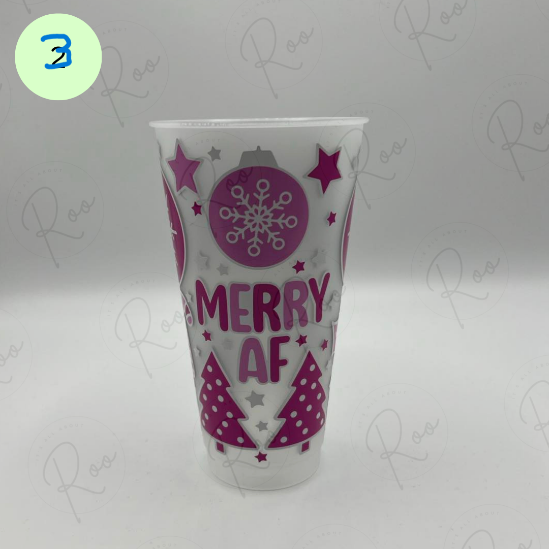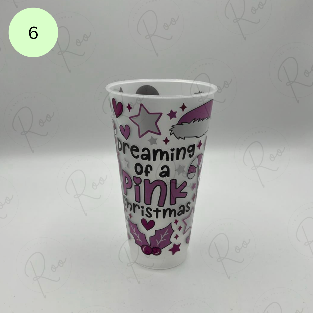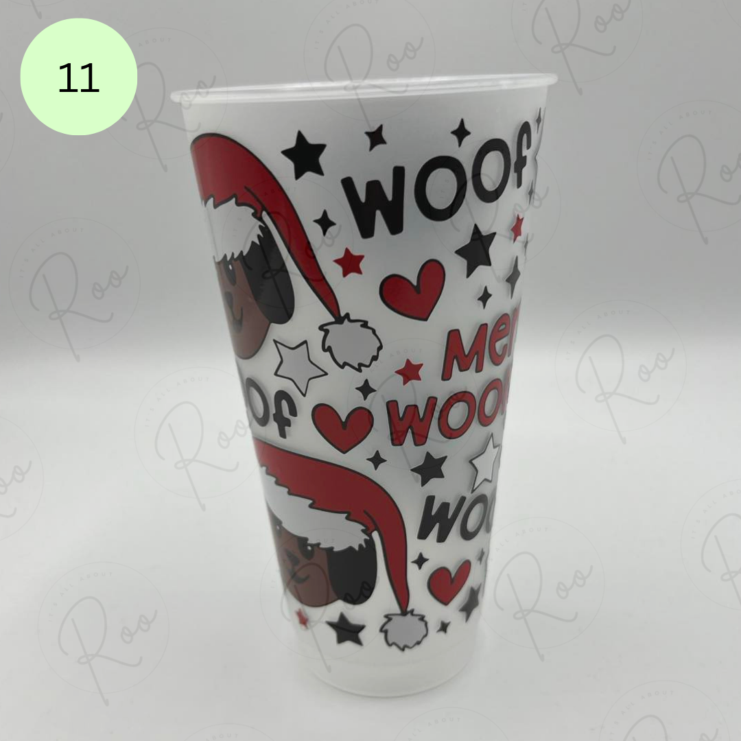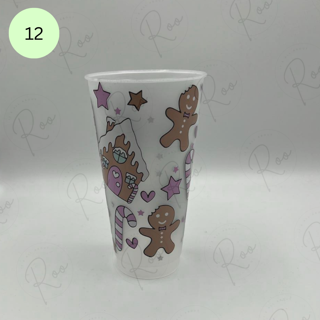 Our 24oz Christmas cold cups are a frosted cup with a Christmas design applied (multiple design choices available).