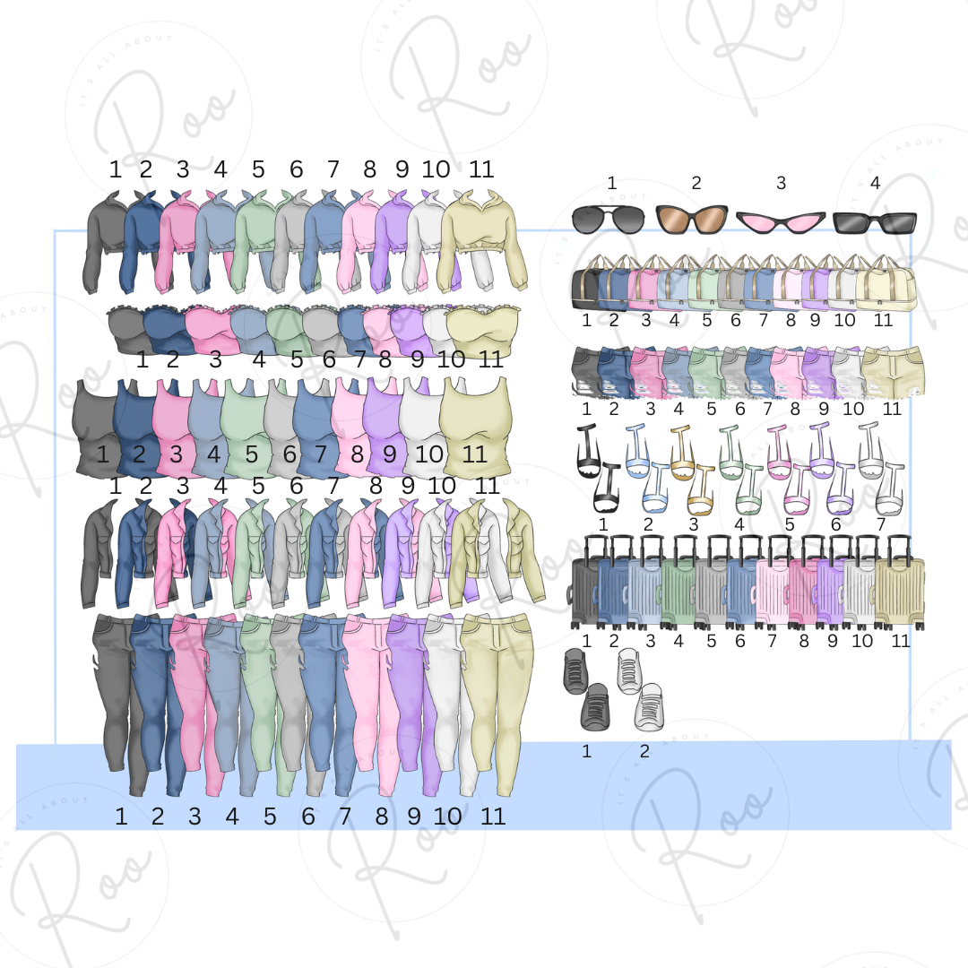 - Outift (cropped hoodie, crop top, vest, jacket, jeans, shorts)