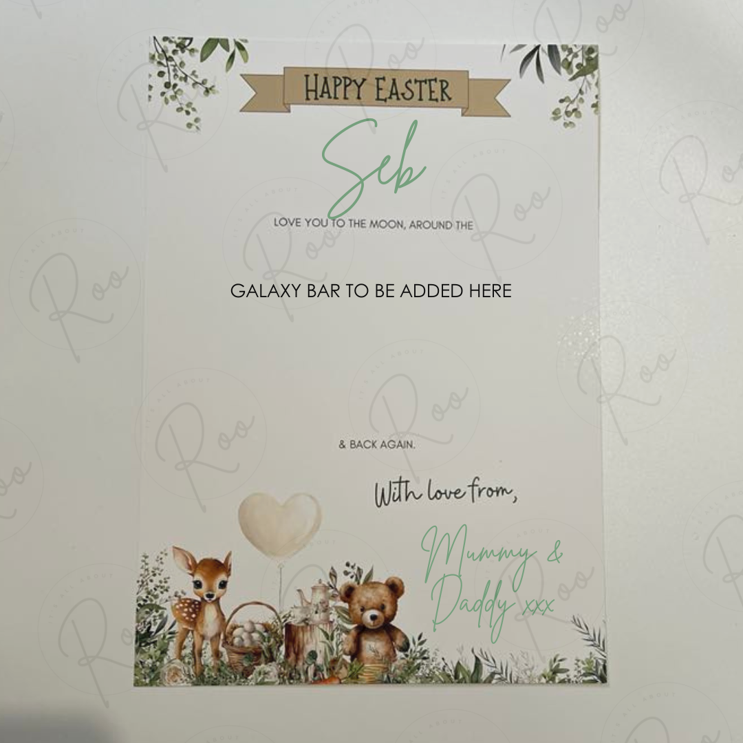 Recipients name/title and givers name personalised. Comes complete with 100g bar of galaxy milk chocolate.