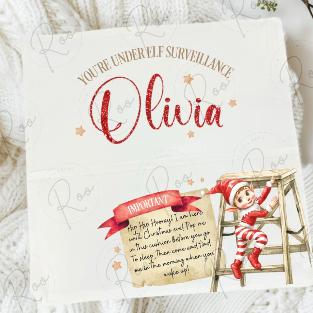Our custom printed cushion cover is the perfect gift idea and this design is brilliant for your elf's arrival!