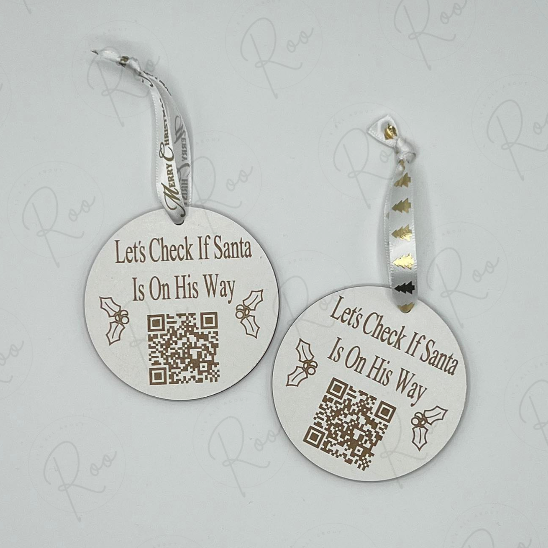 These 8cm baubles are made from MDF and are engraved with a QR code which links to the Norad website to be able to track Santa!